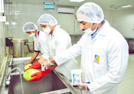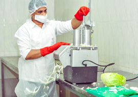 Our innovative and state-of-the-art kitchen machines, they are capable of withstanding intense work schedules, save time, resources and energy. Our massive kitchens feature highly automated innovative cooking systems like steamers, dish washers, salad choppers, packaging machines and so on. Without such highly advanced kitchen amenities we wouldn’t have been successful applying food service production techniques and meet our huge volume production requirements. We proudly produce over 40,000 working lunches a day.